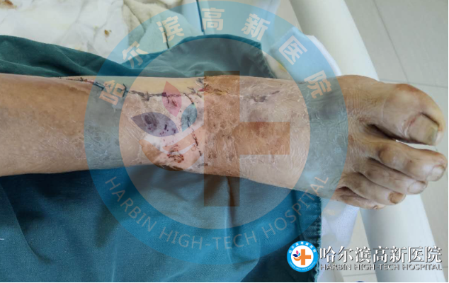 近日,黑龙江省绥化市居民唐先生在操作自家农用机械时右脚被卷入农机,高速旋转的农机致使唐先生右脚皮肤大面积撕脱,在一旁的邻居紧急将农机停止,这才救下了唐先生,但唐先生的右脚已经被撕脱血肉模糊,妻子闻讯赶来,看到倒在地上的唐先生,既心疼又无助,危机中家人紧急联系位于哈尔滨机场路副212号的哈尔滨高新医院。