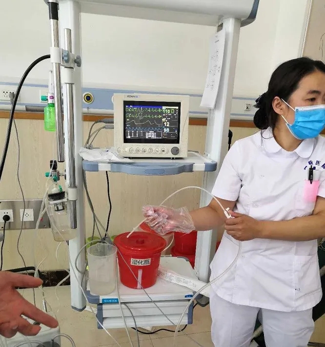 经过抢救患者心肺已经复苏, 但没维持多久就再次陷入停搏,患者命悬一线,医护人员咬紧牙关,经过呼吸机给氧,抗心律失常升压,呼吸兴奋剂等急救措施,时间一分一秒的过去,急救人员轮流进行着心肺复苏,豆大的汗珠从额头滑落,后背也早已不知不觉浸湿、半小时过去了。