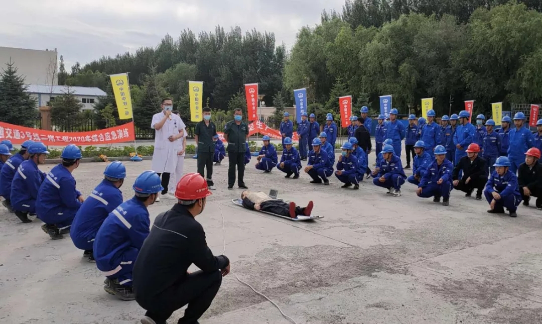 6月19日下午,中国中铁一局集团有限公司哈尔滨市轨道交通3号线二期工程项目部携手哈尔滨高新医院,举行2020年综合应急演练,在龙江名医、哈尔滨高新医院姜文理院长指挥下、由副院长孙丽艳、手外科副主任张瑞超、护士邵迪、120工作人员李伟、姜新利等成员组成专家培训队,守护工友健康,筑牢安全防线。
